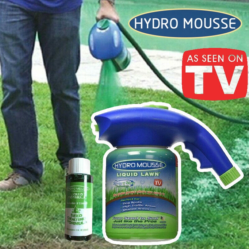8 linhas This item. Is Hydro Mousse Safe. Spray on grass is the ideal solution for pet burn spots high traffic areas and more. The Hydro Mousse liquid formula. Hydro Mousse Liquid Grass Spray Commercial - YouTube. Go from seed to sod just like the pros with Hydro Mouse the worlds first home hydro seeding system. Quick and easy - the grass grows where you spray it. The HydroMousse liquid formula contains an eco-friendly sticking solution that attaches the seed to the soil and a. Hydro Mousse comes with a spray bottle that hooks up to your garden hose a bag of grass seed and a small bottle of green fluid.