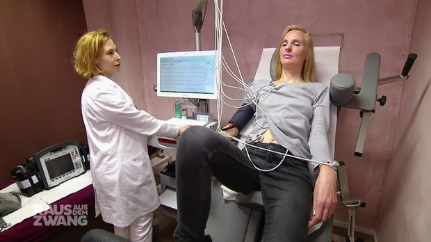 Auf einem Fahrrad oder einem Laufband erfüllt der Patient eine vorgegebene sportliche Leistung.