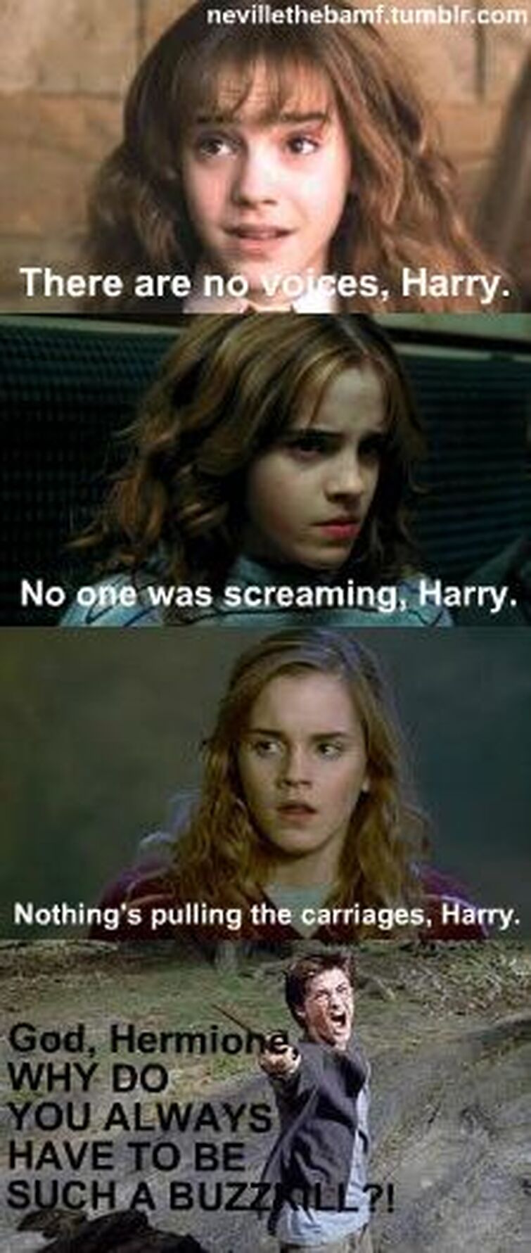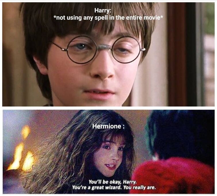 Harry potter and hermione Memes GIFs. Search the Imgflip meme database for popular memes and blank meme templates. Harry Potter and Hermione. Check the NSFW checkbox to enable not-safe-for-work images. These hysterical Hermione memes will make any Harry Potter fan laugh out loud. 4855 views 6 upvotes 2. I was just thinking about if Harry and Hermione actually got together in the books in which book and when would they have started to date.