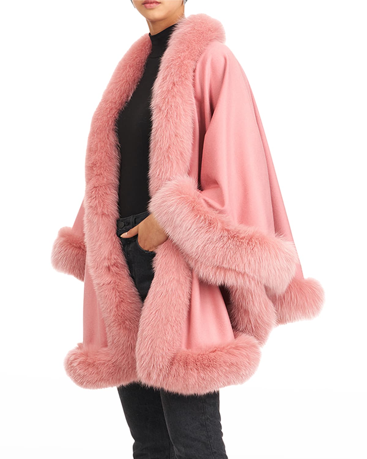 We brought back this best-seller in three fresh and perfectly transitional colors Black Thistle and Coralito. Gorski Cashmere Capelet w Fox Trim. Click here to read the pre-order terms and conditions. Youll find yourself reaching for this mockneck again and again as it adds a playful twist to your classic cashmere sweater by having a slit buttoned back. Model is 59 and wearing a. These capes do not have lining. Intended for a loose fit. Our soft 100 cashmere capelet fits loose on the body fun to layer with a pulled-together je nais se quois that doesnt try too hard. Styled as a capelet or a generous cowl this versatile piece is a simple knit with sophisticated.